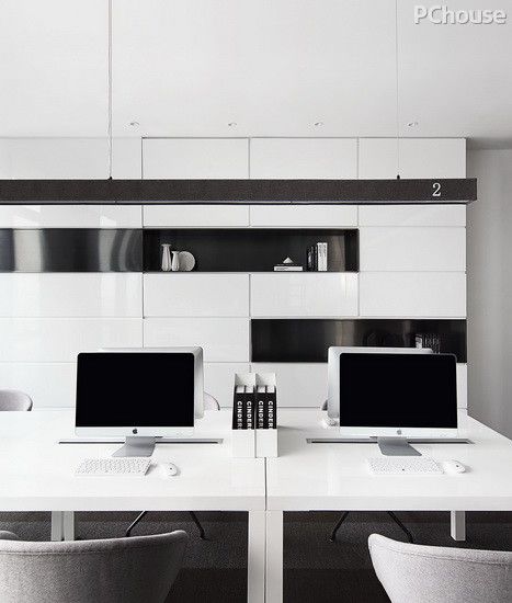 既然在設(shè)計(jì)本身的層面沒有硬性要求,設(shè)計(jì)師便在第一種情境中嘗試著玩一種黑白灰關(guān)系的像素視覺,而將小一點(diǎn)的空間想象成一個小型的文創(chuàng)行業(yè)的辦公地。